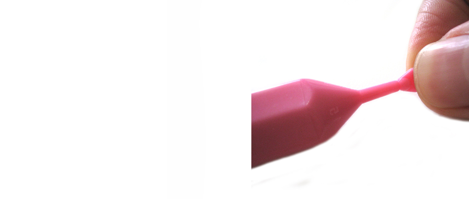 2: Tearing off top of pen and pushing tube.